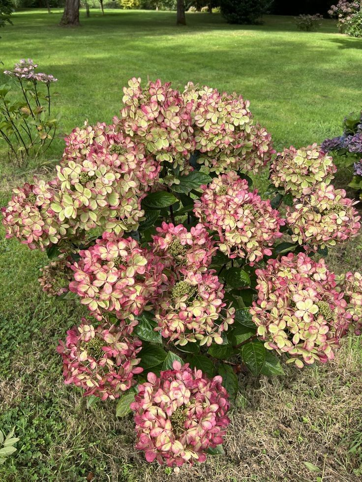 Соцветие 20 см, в начале цветения имеет сливочно-белую окраску с желто-зеленым центром, чуть позже появляется много цветовых штрихов (розовая кайма, фисташковый центр). В осенней окраске можно увидет всю палитру цветов!