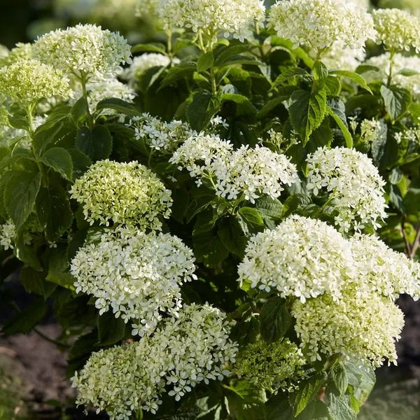 Шарообразные соцветия диаметром около 15 см состоят из белых цветков, которые сначала имеют зеленую окраску, затем они становятся нежно-лаймовыми и постепенно возвращаются к первоначальному оттенку. Цветение гортензии этого сорта начинается уже в середине июня и продолжается до первых дней октября. Аромат очень приятный.