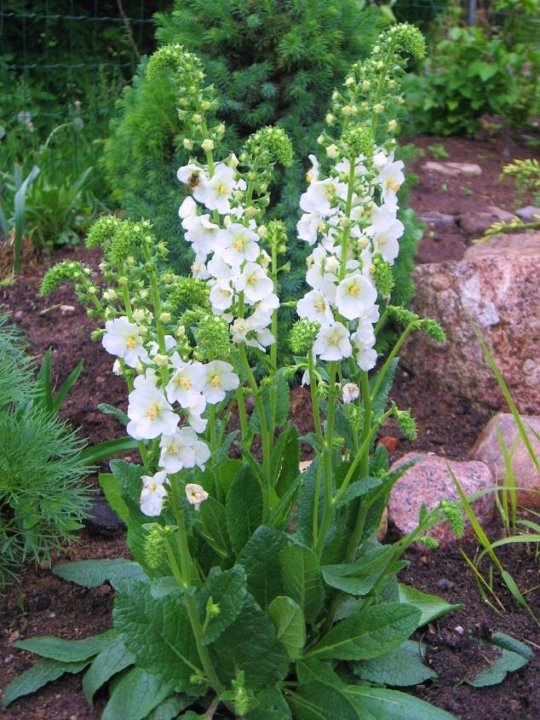 Обладает прямостоячими стеблями и крупными, плотными соцветиями метельчато-кистевого типа. Их белоснежная окраска в сочетании с яркими тычинками создает выразительный контраст в саду.