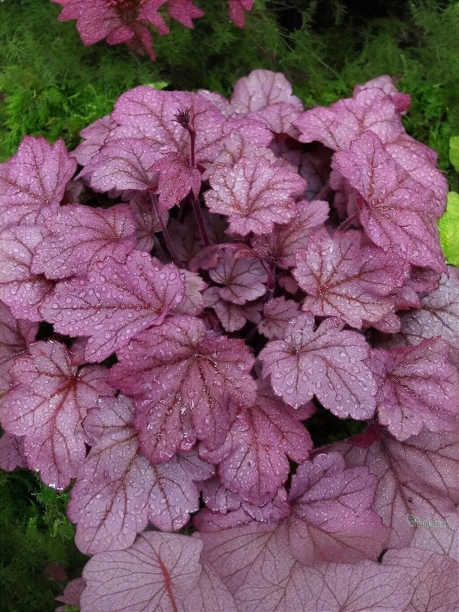 Яркий сорт с сочной листвой, которая меняет окраску от тёмно-розовых до серебристо-пурпурных оттенков. Листья округлые, слегка гофрированные, полуглянцевые, эффектно переливаются на солнце и сохраняют декоративность до поздней осени.![]()