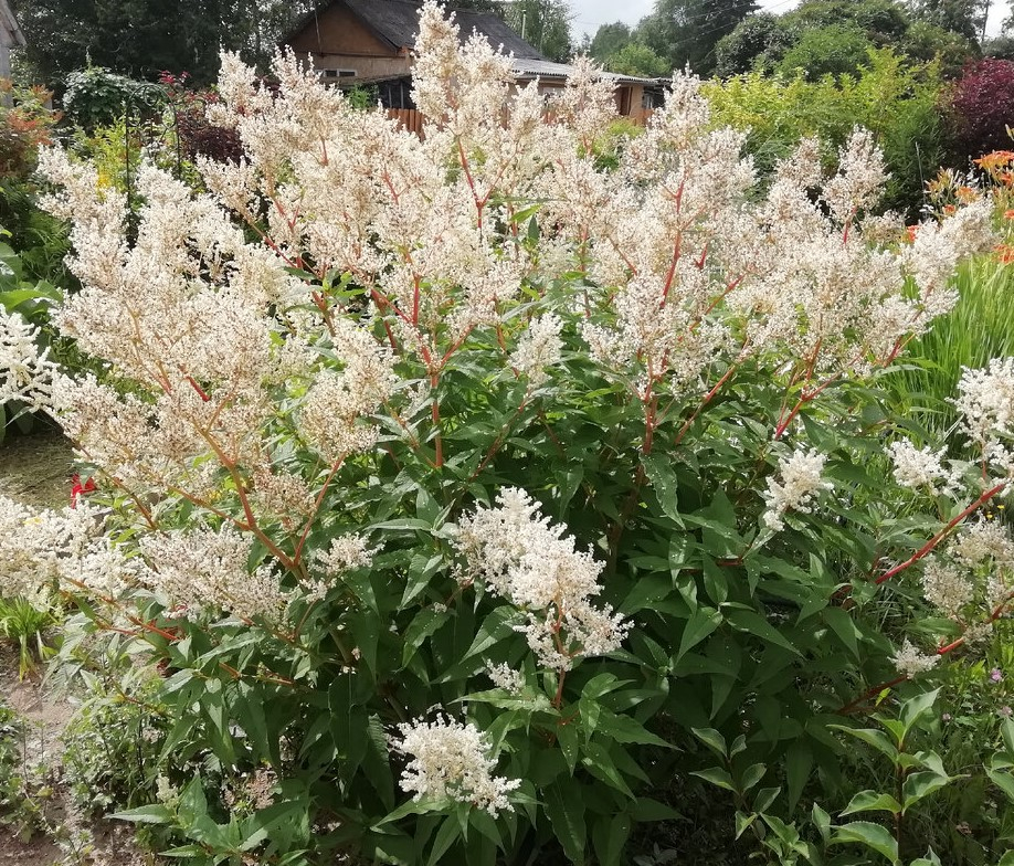 Соцветия большие, со множеством мелких цветов на метелках от белого до светло-розового оттенка. Аромат очень яркий и напоминает запах меда.