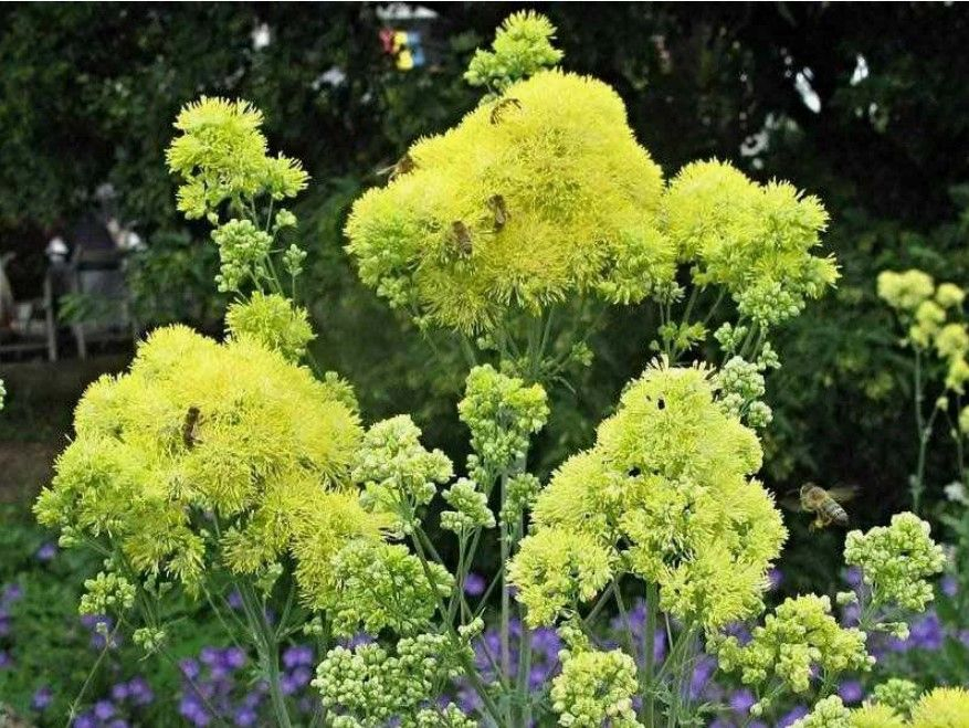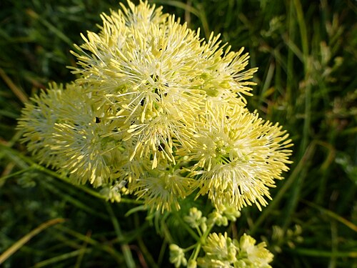 Листья перистые, голубовато-зеленые. Цветки этого растения по размеру небольшие, обладающие весьма душистым ароматом, по окрасу они являются зеленовато-кремовыми и наделены большим количеством тычинок.