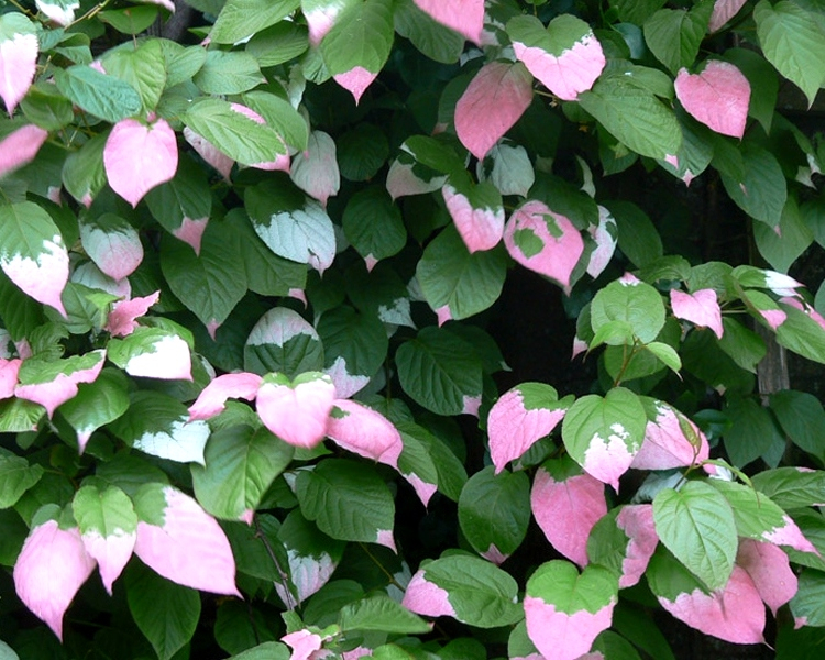 Листья простые, овальные, с заостренным концом, часто на свету меняющие окраску во время цветения на белую или розовую (у мужских экземпляров).