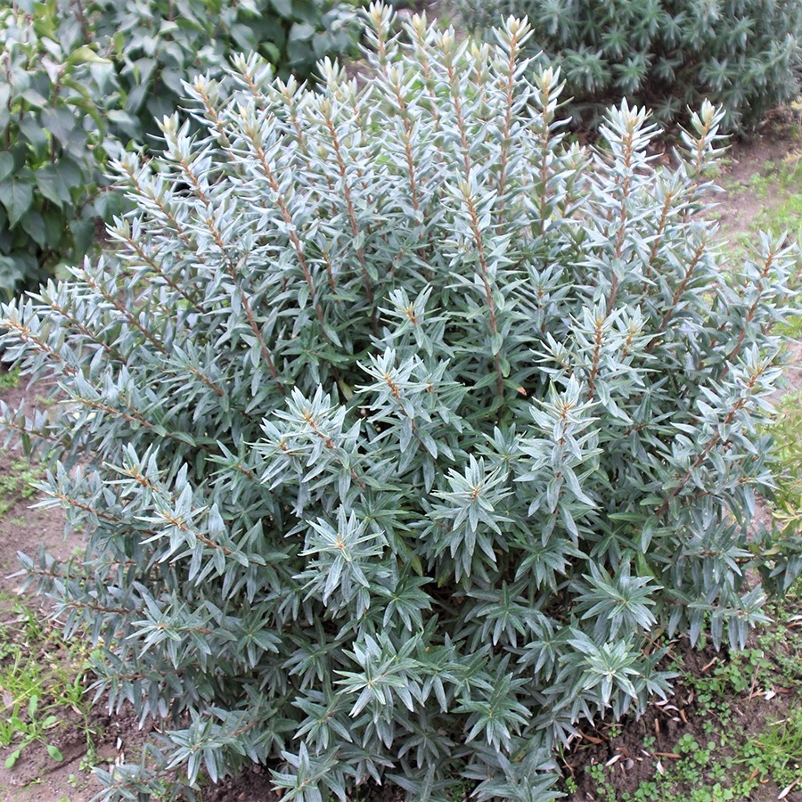 Высота 1,0-1,5 м. Имеет сферическую форму, образованную плотными густыми побегами. Листочки окрашены в серебристый оттенок сверху и серые тона в нижней части. Они мелкие, узколанцетные и густо располагаются на побеге. Побеги имеют небольшие колючки.