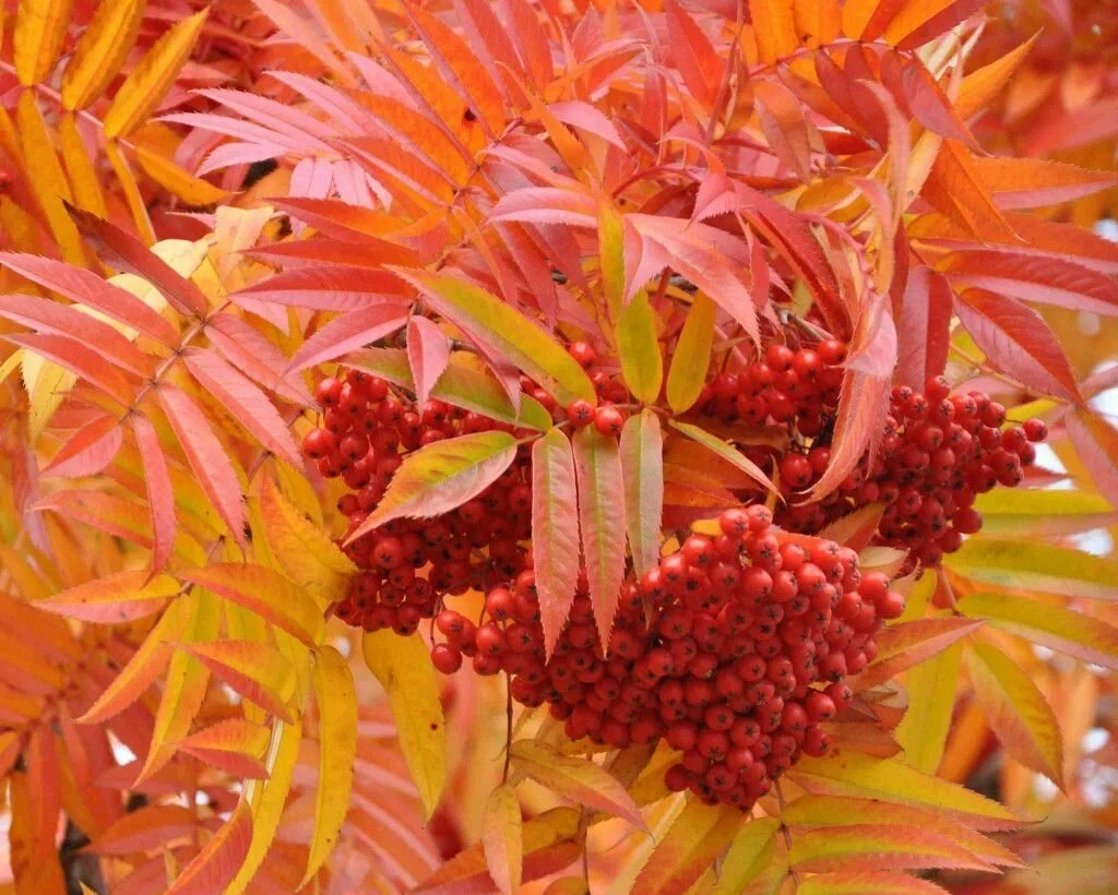Листья ажурные, крупные, непарноперистые. Осенью раскрашиваютя в оранжево-красные тона.