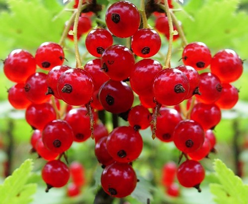 Ягоды крупные, до 2 г, алые, собраны в длинные кисти, смородинового вкуса, хорошо желируются.