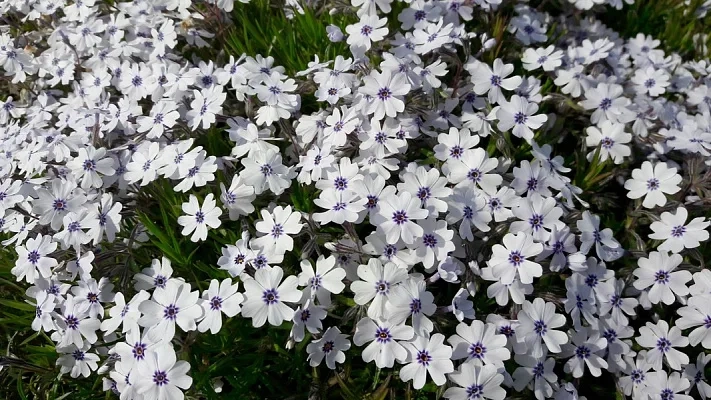 Цветки белые с темно-фиолетовым центром. Достигают 2,5 см в диаметре и имеют легкий едва уловимый, но приятный аромат.