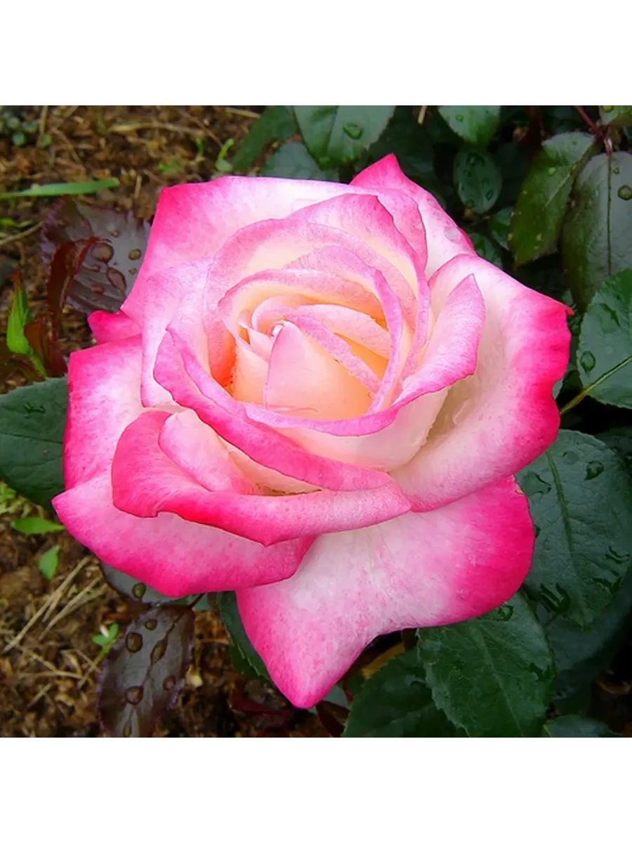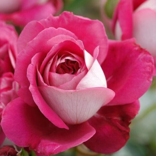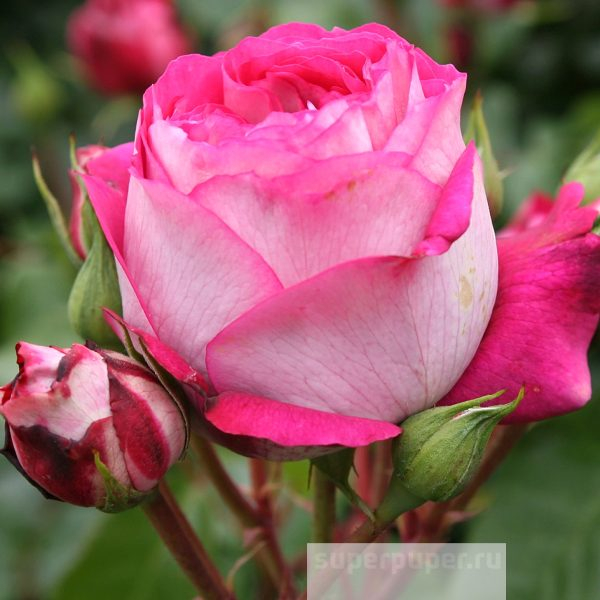 Цветки махровые, «ностальгические», необычно окрашенные, с внутренней стороны лепестки ярко-розовые, с внешней – серебристо-белые. Аромат хороший, сильный. Цветение обильное, повторное.