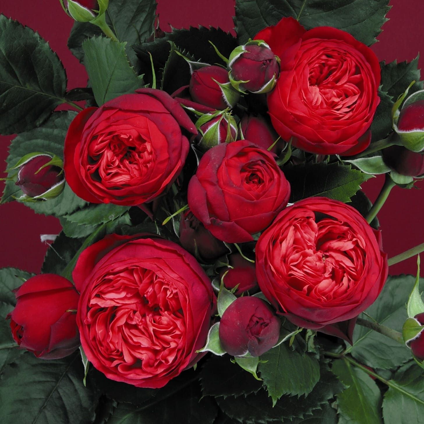 Цвет очень яркий, светящийся, цветки вначале шаровидные, позднее чашевиные, с плотно набитой серединкой. Аромат легкий.