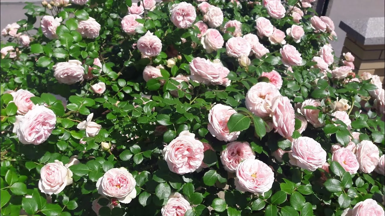 Крупные, квартированные цветки чудесного нежно-розового цвета появляются в небольших кистях. Куст ветвится от самого основания, не оголяется снизу. Цветки с насыщенным фруктовым ароматом долго не увядают.