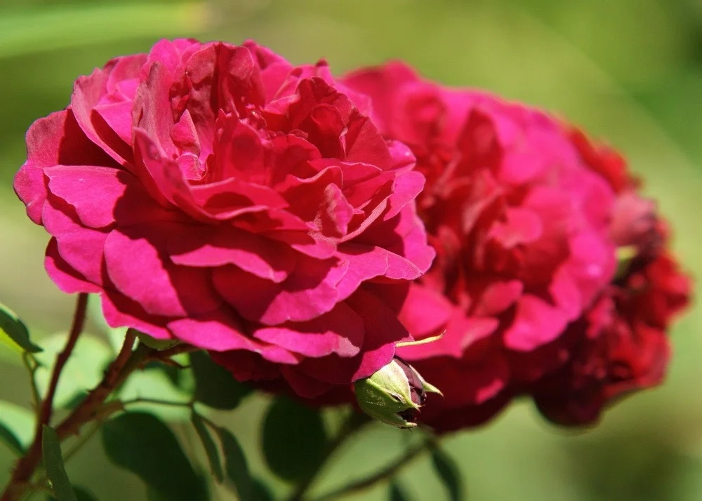 Бутоны почти черные, а цветки сияющего, насыщенного красно-малинового цвета, затем выгорают до бледно-малинового, раскрываются и отгибают лепестки вниз так, что становятся похожими на помпоны.